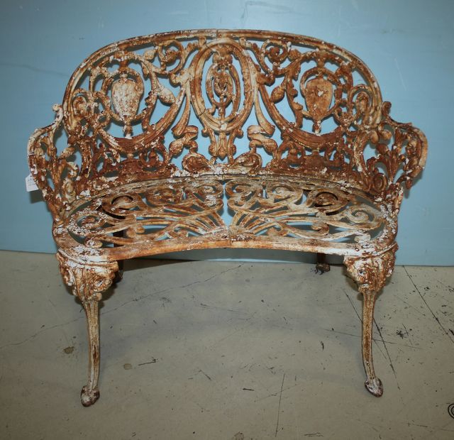 Painted Iron Settee 36" w., 31" h. Painted Iron Settee 36" w., 31" h.