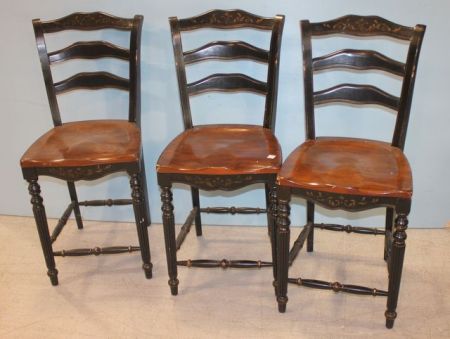 Three Black Stenciled Barstools 18" w., 42" h. Three Black Stenciled Barstools 18" w., 42" h.
