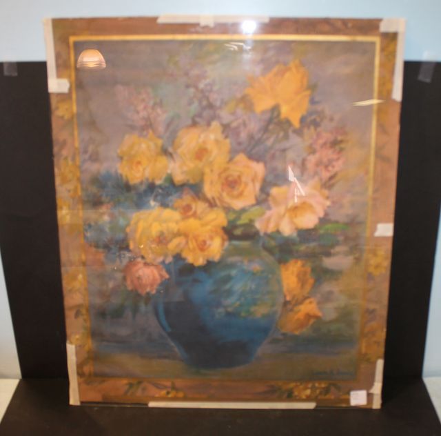 356 Beautiful Floral Print Under glass, no frame, signed Laura H. Jacobs; 20" w., 24" h.