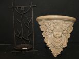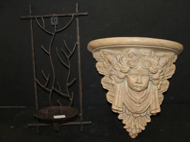 Iron Twig Design Candlestick and Resin Angel Face Sconce Candlestick 6" w., 12" h. and sconce 9" w., 8 1/2" h. Iron Twig Design Candlestick and Resin Angel Face Sconce Candlestick 6" w., 12" h. and sconce 9" w., 8 1/2" h.