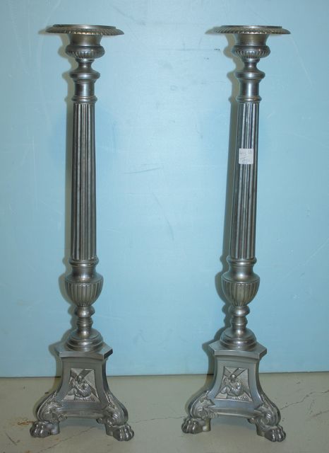 413 Pair of Metal Clawfoot Candlesticks 28" h.