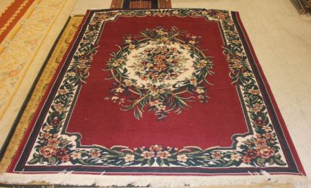 Dayln Rug Company Aubusson, dominate color is maroon, has center medallion; 5' 6" x 8' Dayln Rug Company Aubusson, dominate color is maroon, has center medallion; 5' 6" x 8'
