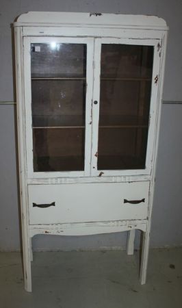571 Hand Brushed White Distressed Painted Double Door China Cabinet 31 1/2" w., 15" d., 65" h.