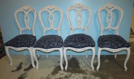 575 Four Hand Brushed White Distressed Painted French Dining Chairs 37 1/2" h.