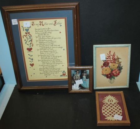584 Four Various Prints Couple - 5" x 6", pineapple - 6" x 7", floral - 8" x 9", mother/father - 14" x 18"