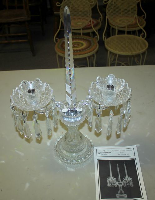 Signed Waterford Two Arm Candelabra 20" h., 13 1/2" w. Signed Waterford Two Arm Candelabra 20" h., 13 1/2" w.