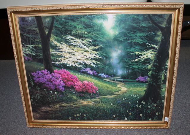 653 Painting of Path Through the Woods Signed in lower right corner; 33 1/2" w., 27" h.