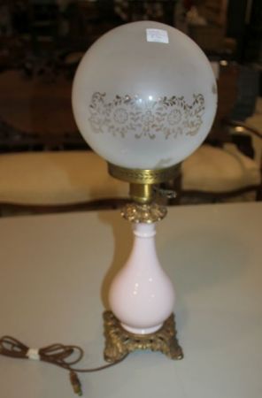 666 Porcelain and Brass Lamp with Etched Shade 18" h.