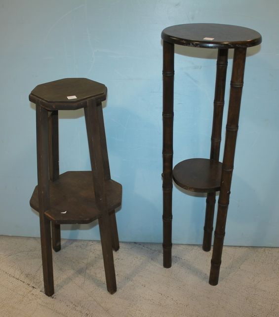 699 Two Wood Pedestals 11" dia., 37" h. and 9" dia., 30" h.