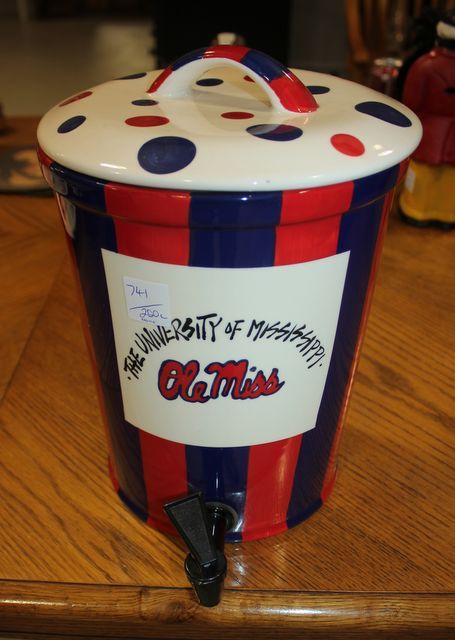 Ole Miss Dispenser with Lid 8 1/2" dia., 11 1/2" h. Ole Miss Dispenser with Lid 8 1/2" dia., 11 1/2" h.