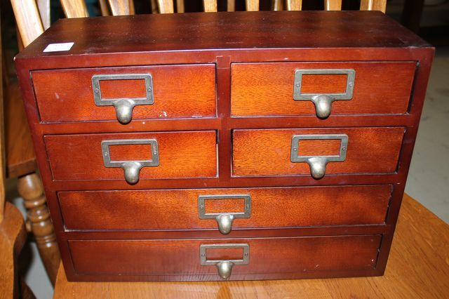 Wood Six Drawer Box 15" w., 11" h., 6" d. Wood Six Drawer Box 15" w., 11" h., 6" d.