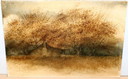 Early watercolor of barn in a field done on artist board, signed lower left Carole Pigott-Hardy; 30" w., 20" h. Early watercolor of barn in a field done on artist board, signed lower left Carole Pigott-Hardy; 30" w., 20" h.