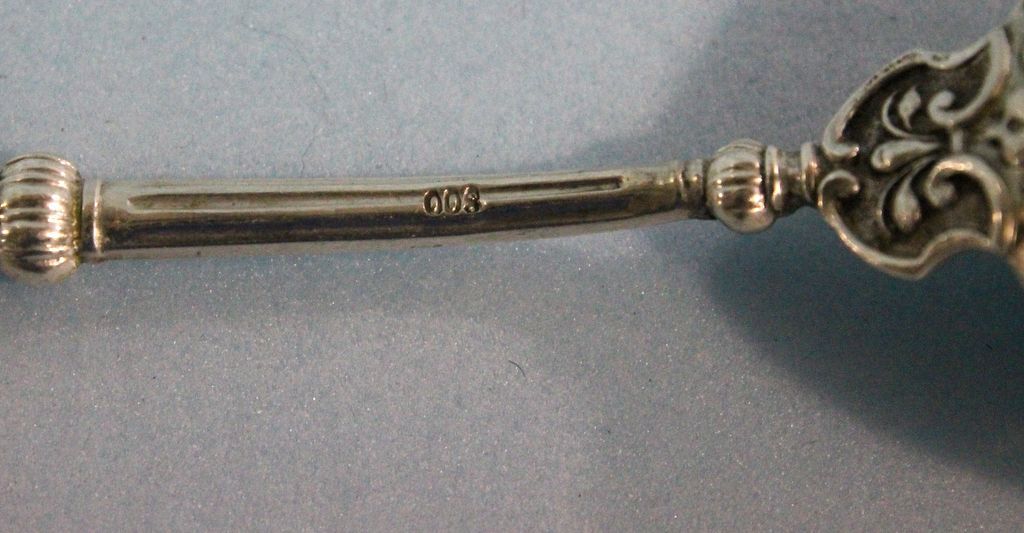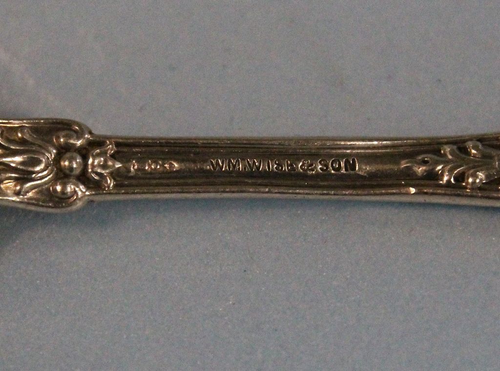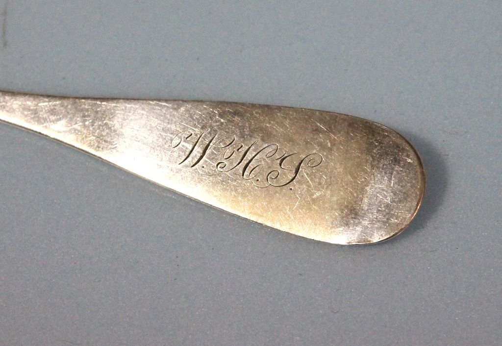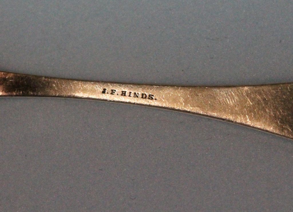 Five electoplate tablespoons, two rare Wm. Weiss and Sons grapefruit spoons, odd small coin silver spoon, J.F. Hinds "coin" spoon (1840-1860's) and .800 silver serving spoon; 10 total pieces, 11.805 ozt. Five electoplate tablespoons, two rare Wm. Weiss and Sons grapefruit spoons, odd small coin silver spoon, J.F. Hinds "coin" spoon (1840-1860's) and .800 silver serving spoon; 10 total pieces, 11.805 ozt.