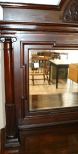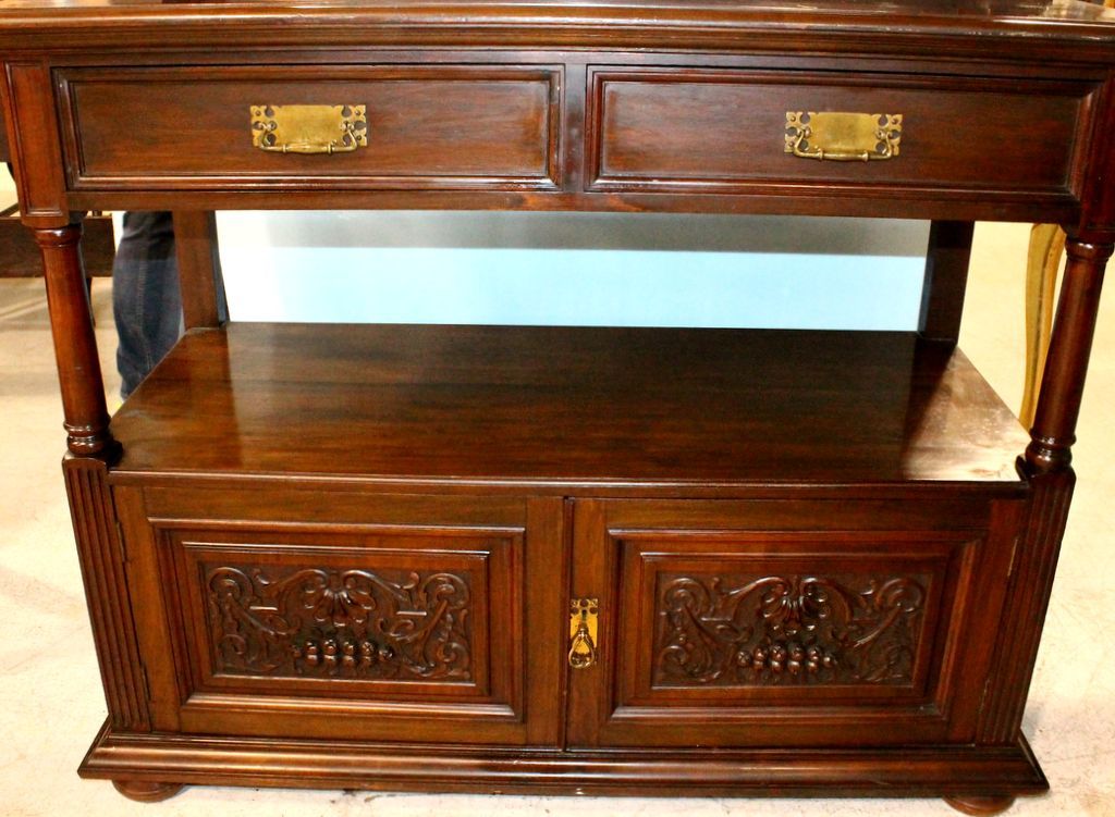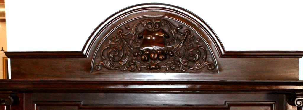 Mahogany server with fruit carved doors and crest.; 48" w., 75" h., 22" d. Mahogany server with fruit carved doors and crest.; 48" w., 75" h., 22" d.