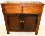 Circa 1840 American empire mahogany jelly cupboard with two drawers, two doors.; 48" w., 21" d., 46 1/2" h. Circa 1840 American empire mahogany jelly cupboard with two drawers, two doors.; 48" w., 21" d., 46 1/2" h.