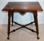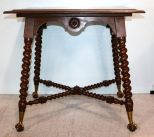 Cherry clawfoot center table with tobacco twist legs and stretcher.; 32" w., 29" h., 26" d. Cherry clawfoot center table with tobacco twist legs and stretcher.; 32" w., 29" h., 26" d.