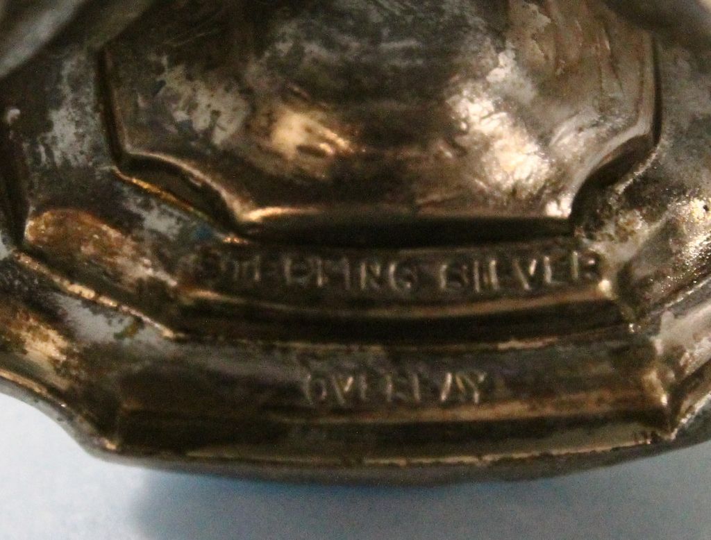 Sterling weighted compote (dent on rim & base) 5 1/4" dia., pair 3 1/2" h. sterling weighted candlesticks, pair 2 1/2" h. sterling weighted candlesticks, pair 4 1/2" h. sterling weighted candlesticks, and two odd sterling shakers Sterling weighted compote (dent on rim & base) 5 1/4" dia., pair 3 1/2" h. sterling weighted candlesticks, pair 2 1/2" h. sterling weighted candlesticks, pair 4 1/2" h. sterling weighted candlesticks, and two odd sterling shakers