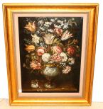 Vintage textured oil painting of bouquet of flowers.; 25 1/2" w., 32" h. Vintage textured oil painting of bouquet of flowers.; 25 1/2" w., 32" h.