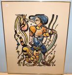 Walter Anderson watercolor entitled "Dick Whittington", cracked glass; 28" w., 35 1/2" h. Walter Anderson watercolor entitled "Dick Whittington", cracked glass; 28" w., 35 1/2" h.