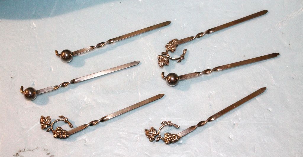 315 Gorham Sterling Silver Handle Salad Set and Six Cocktail Picks