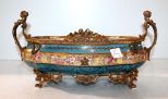 High style hand painted Victorian style porcelain centerpiece with bronze mounted figural handles and roccoco feet.; 15 1/2" w., 8" w. High style hand painted Victorian style porcelain centerpiece with bronze mounted figural handles and roccoco feet.; 15 1/2" w., 8" w.