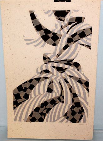 Early 1950's original silkscreen of an abstract figure by well known Mississippi artist Andrew Bucci, signed in pencil in lower right.; 12" w., 19" h. Early 1950's original silkscreen of an abstract figure by well known Mississippi artist Andrew Bucci, signed in pencil in lower right.; 12" w., 19" h.