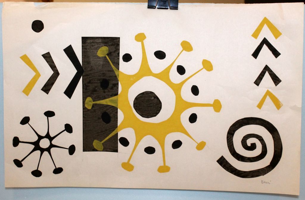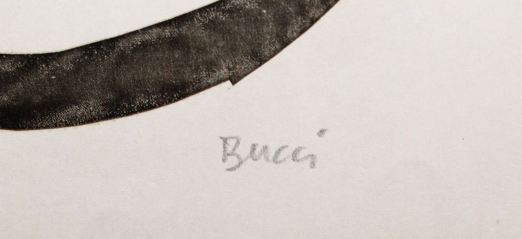 Unusual original 1950's abstract silkscreen signed Bucci in lower right; 12" w., 19" h. Unusual original 1950's abstract silkscreen signed Bucci in lower right; 12" w., 19" h.