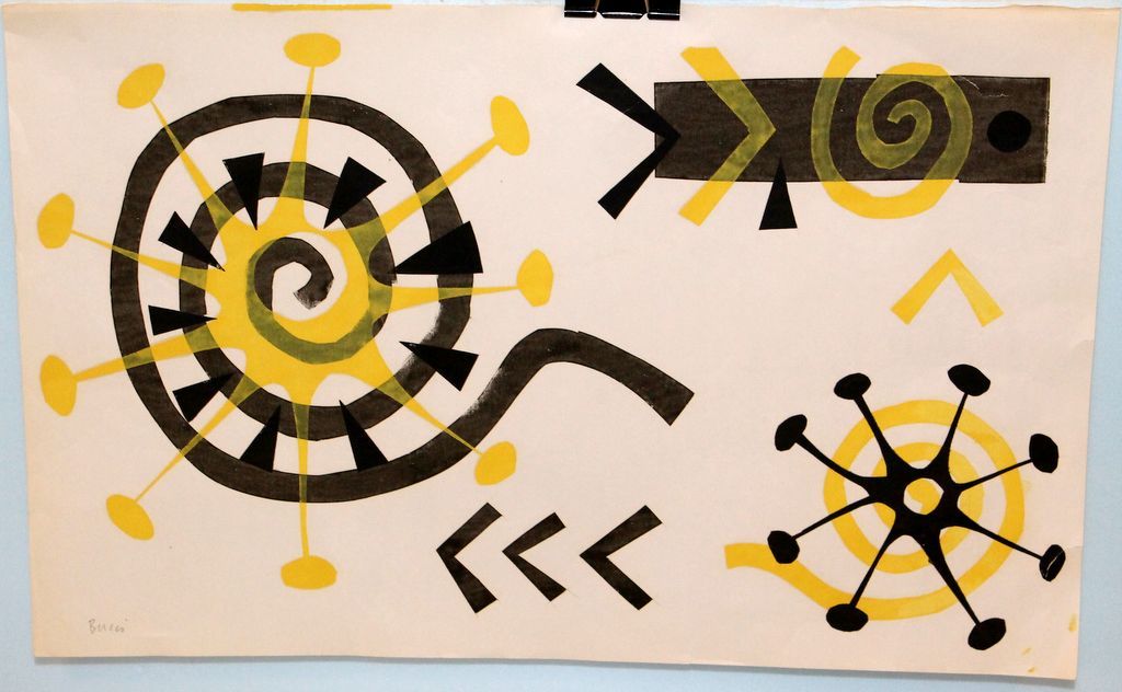 Unusual original 1950's abstract silkscreen signed Bucci in lower left.; 12" w., 19" h. Unusual original 1950's abstract silkscreen signed Bucci in lower left.; 12" w., 19" h.