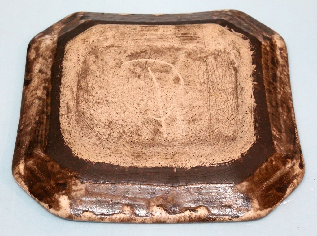 Nutmeg Peters Pottery syrup pitcher, 6" h; Octagon shaped dish 9 1/2" square Nutmeg Peters Pottery syrup pitcher, 6" h; Octagon shaped dish 9 1/2" square