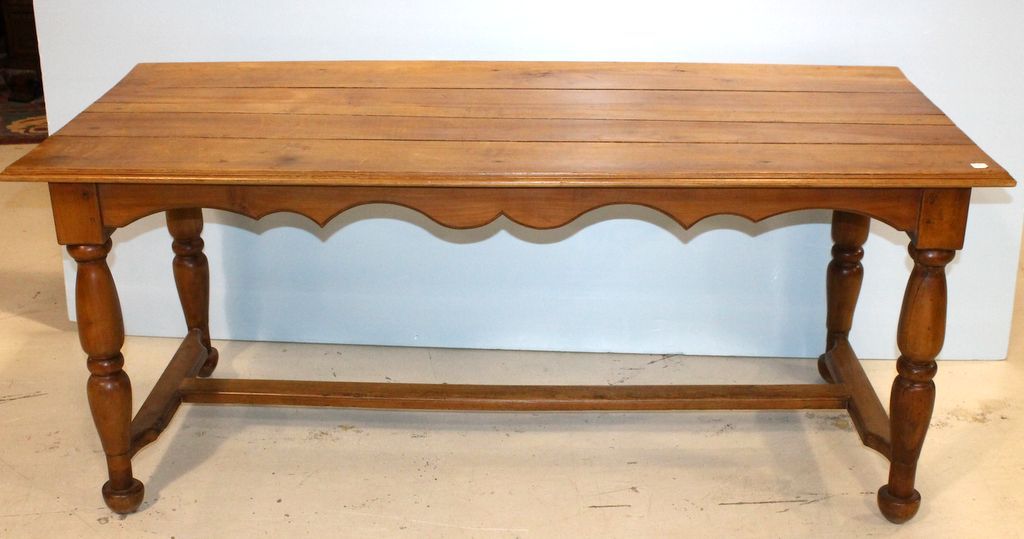 Early cherry random width board cherry country French pegged plantation table.; 68 1/2" w., 30 1/2" d., 30" h. Early cherry random width board cherry country French pegged plantation table.; 68 1/2" w., 30 1/2" d., 30" h.