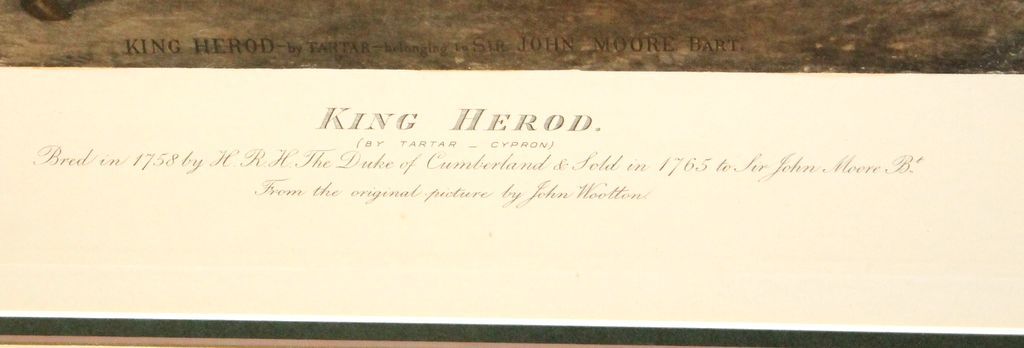 Hand colored print of Famous Horse King Herod. King Herod was famous running horse owned by Royalty. Illustrated by Mess, Fores, 41, Picadilly; 27 1/2" w., 26 1/2" h. Hand colored print of Famous Horse King Herod. King Herod was famous running horse owned by Royalty. Illustrated by Mess, Fores, 41, Picadilly; 27 1/2" w., 26 1/2" h.