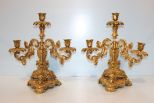 Pair of finely cast Brass candlesticks. Pair of three arm Louis XV style ormolu candlesticks with grapes, scrolls, and dolphins; 17" h., 14 1/2" w. Pair of finely cast Brass candlesticks. Pair of three arm Louis XV style ormolu candlesticks with grapes, scrolls, and dolphins; 17" h., 14 1/2" w.