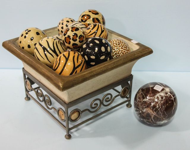 With painted porcelain balls; 15" dia. With painted porcelain balls; 15" dia.