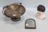 1196 Silverplate Card Receiver, Large China Doll Head & Small Mirror