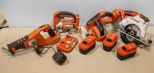 Consists of reciprocating saw, jigsaw, two saws, charger and three batteries Consists of reciprocating saw, jigsaw, two saws, charger and three batteries