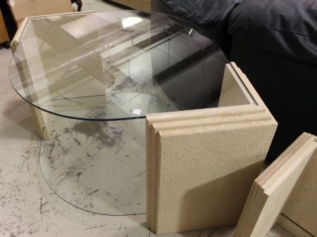 With glass top and glass shelf; 60" w., 28" h., 38" d. With glass top and glass shelf; 60" w., 28" h., 38" d.