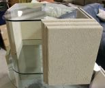With glass top and shelf; 43" w., 23" h., 32" d. With glass top and shelf; 43" w., 23" h., 32" d.