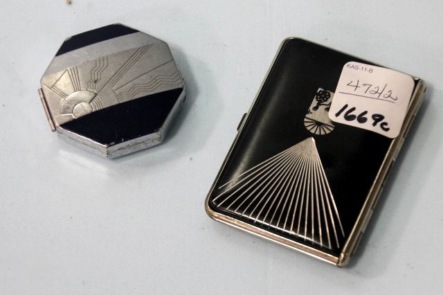 Mondaine silverplate and black enamel rouge compack and Bourjis silverplate and black enamel rouge compact Mondaine silverplate and black enamel rouge compack and Bourjis silverplate and black enamel rouge compact