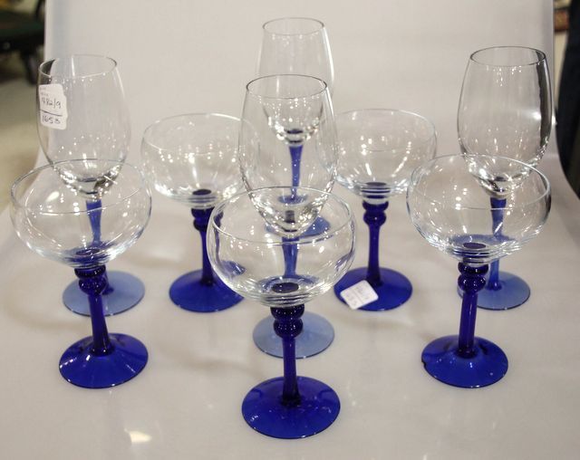 482 Four Light Blue Stem Glasses & Five Cobalt Stem Glasses