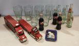 Consists of six Coke glasses, eight Coke bottles, two Coke trucks and mini Coke Tin Consists of six Coke glasses, eight Coke bottles, two Coke trucks and mini Coke Tin