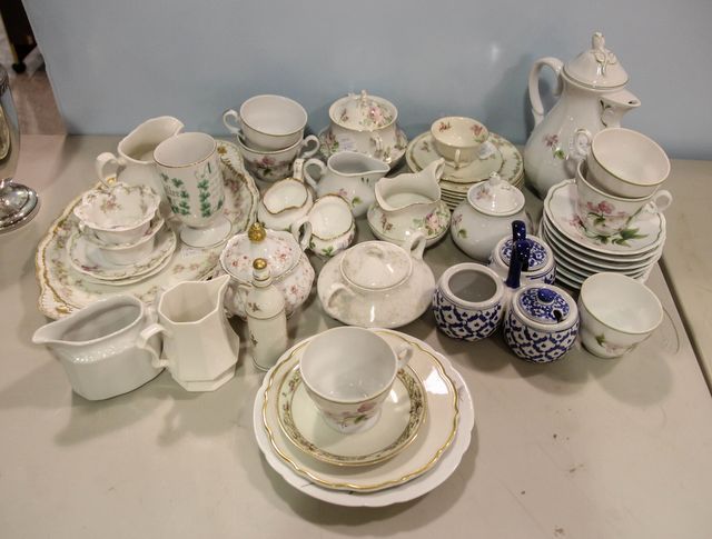 Including Limoges platter, teapot, sugars and creamers Including Limoges platter, teapot, sugars and creamers
