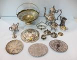 966 Silverplate Tea Set, Basket, Lids & Trivet