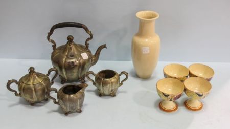 991 Five Piece Plated Tea Set, Four Dessert Cups & Ceramic Vase