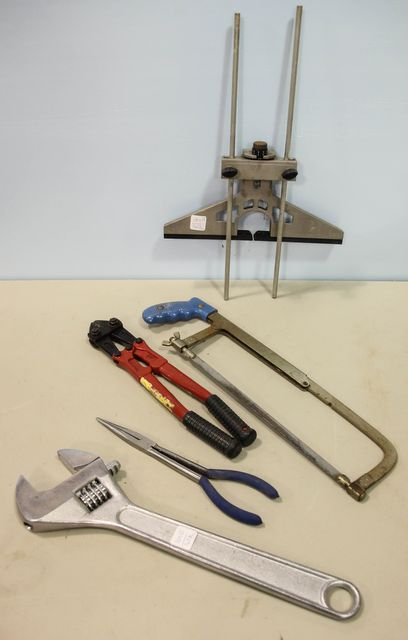 Includes bolt cutter, hacksaw, needle nose pliers and adjustable wrench Includes bolt cutter, hacksaw, needle nose pliers and adjustable wrench