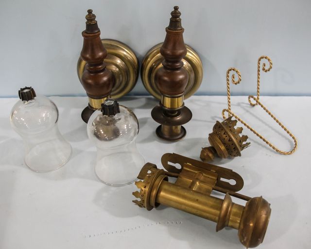 Brass and Wood Wall Candl...