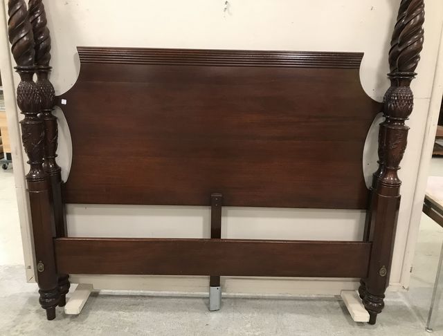 Lexington Palmer Plantation Four Poster Bed, King size, twist posts, has rails, good condition. Palmer Home Collection. Lexington Palmer Plantation Four Poster Bed, King size, twist posts, has rails, good condition. Palmer Home Collection.