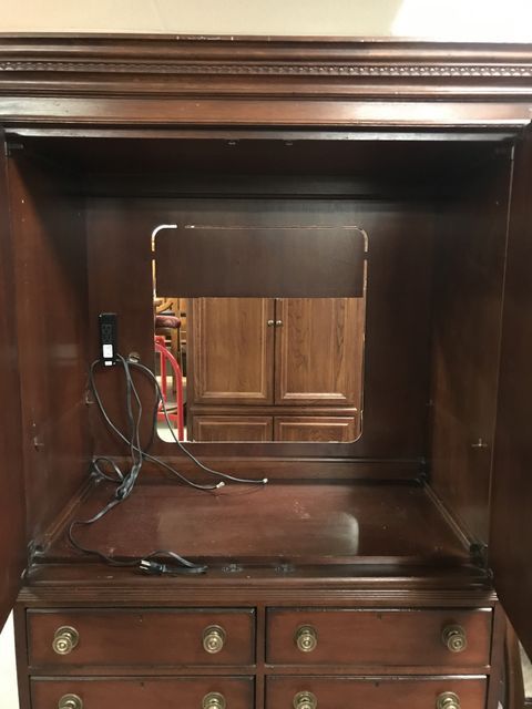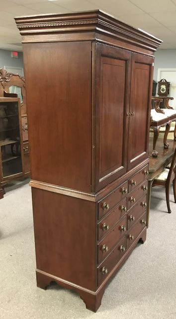 Lexington Palmer Collection Entertainment Cabinet, two pieces, top tv cabinet, bottom has 8 small drawers, has some finish wear, 80"h., 46"w., 24"d. Lexington Palmer Collection Entertainment Cabinet, two pieces, top tv cabinet, bottom has 8 small drawers, has some finish wear, 80"h., 46"w., 24"d.