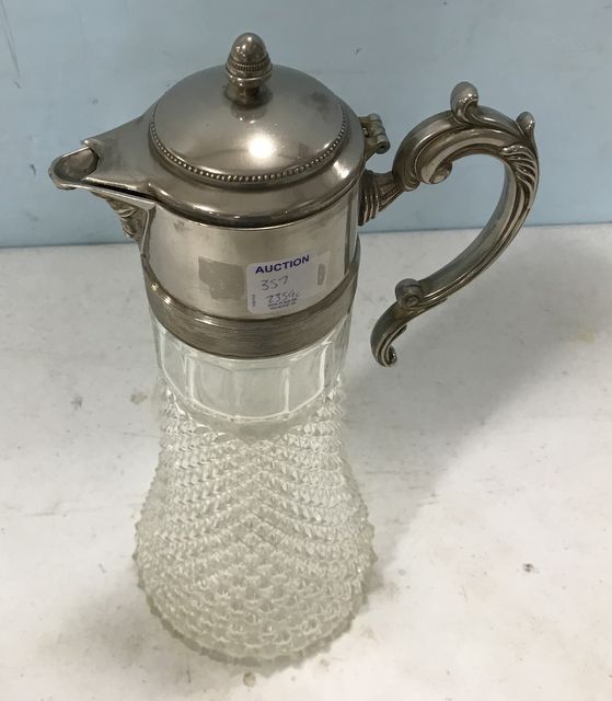 357 Silverplate & Glass Caraffe Pitcher With Glass Ice Tube