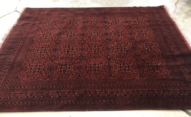 Bokhara Style Persian Area Rug, hand made, wool, dark red, good condition, 6'8 x 8'4. Bokhara Style Persian Area Rug, hand made, wool, dark red, good condition, 6'8 x 8'4.