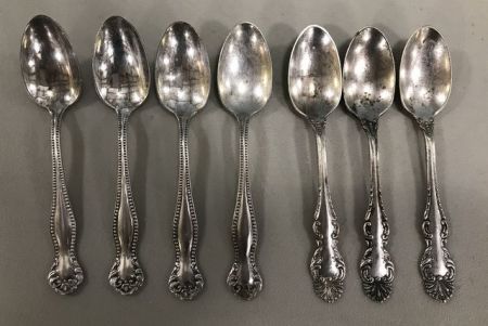 Benedict #2 1900 or pearl 1898 4 spoons, no. 1731 landers,1895 demi tasse spoons. Benedict #2 1900 or pearl 1898 4 spoons, no. 1731 landers,1895 demi tasse spoons.